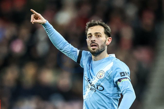 Bernardo Silva of Manchester City gives his team instructions during the Premier League match Sunderland vs Manchester City at Stadium Of Light, Sunderland, United Kingdom, 1st January 2026, Credit:Ae Cosgrove/News Images / Avalon