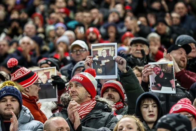 Sunderland fans hold up pictures of loved ones on remembrance fixture during the Premier League match Sunderland vs Manchester City at Stadium Of Light, Sunderland, United Kingdom, 1st January 2026, Credit:Ae Cosgrove/News Images / Avalon