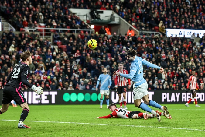 Josko Gvardiol of Manchester City heads on goal during the Premier League match Sunderland vs Manchester City at Stadium Of Light, Sunderland, United Kingdom, 1st January 2026, Credit:Ae Cosgrove/News Images / Avalon
