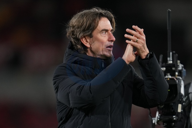 Thomas Frank manager of Tottenham Hotspur applauds support during the Premier League match Brentford vs Tottenham Hotspur at The Gtech Community Stadium, London, United Kingdom, 1st January 2026, Credit:Harvey Murphy/News Images / Avalon