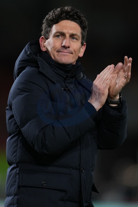 Keith Andrews manager of Brentford applauds home support at full time during the Premier League match Brentford vs Tottenham Hotspur at The Gtech Community Stadium, London, United Kingdom, 1st January 2026, Credit:Harvey Murphy/News Images / Avalon