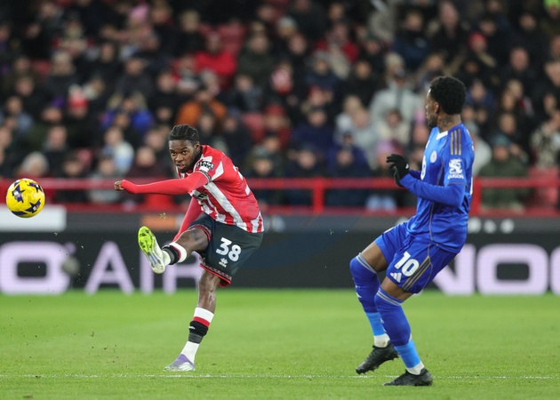 Femi Seriki of Sheffield United passes the ball during the Sky Bet Championship match Sheffield United vs Leicester City at Bramall Lane, Sheffield, United Kingdom, 1st January 2026, Credit:Richard Bierton/News Images / Avalon