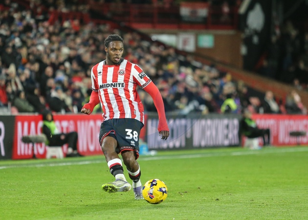 Femi Seriki of Sheffield United passes the ball during the Sky Bet Championship match Sheffield United vs Leicester City at Bramall Lane, Sheffield, United Kingdom, 1st January 2026, Credit:Richard Bierton/News Images / Avalon
