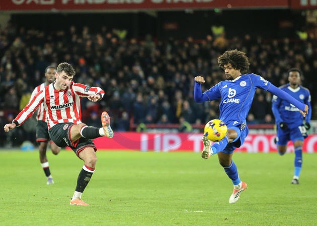 Thomas Cannon of Sheffield United crosses the ball during the Sky Bet Championship match Sheffield United vs Leicester City at Bramall Lane, Sheffield, United Kingdom, 1st January 2026, Credit:Richard Bierton/News Images / Avalon
