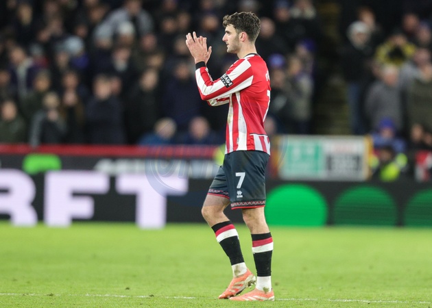 Thomas Cannon of Sheffield United applauds the fans during the Sky Bet Championship match Sheffield United vs Leicester City at Bramall Lane, Sheffield, United Kingdom, 1st January 2026, Credit:Richard Bierton/News Images / Avalon