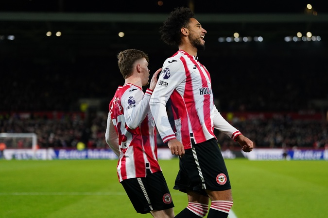 Kevin Schade of Brentford celebrates but goal is ruled out for offside during the Premier League match Brentford vs Tottenham Hotspur at The Gtech Community Stadium, London, United Kingdom, 1st January 2026, Credit:Harvey Murphy/News Images / Avalon