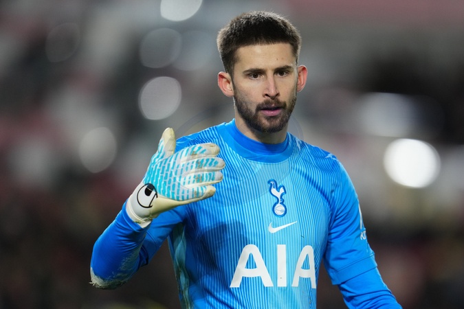 Guglielmo Vicario of Tottenham Hotspur during the Premier League match Brentford vs Tottenham Hotspur at The Gtech Community Stadium, London, United Kingdom, 1st January 2026, Credit:Harvey Murphy/News Images / Avalon