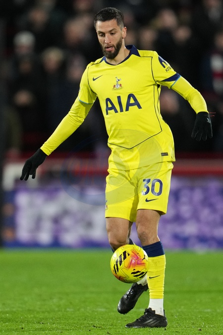 Rodrigo Bentancur of Tottenham Hotspur during the Premier League match Brentford vs Tottenham Hotspur at The Gtech Community Stadium, London, United Kingdom, 1st January 2026, Credit:Harvey Murphy/News Images / Avalon