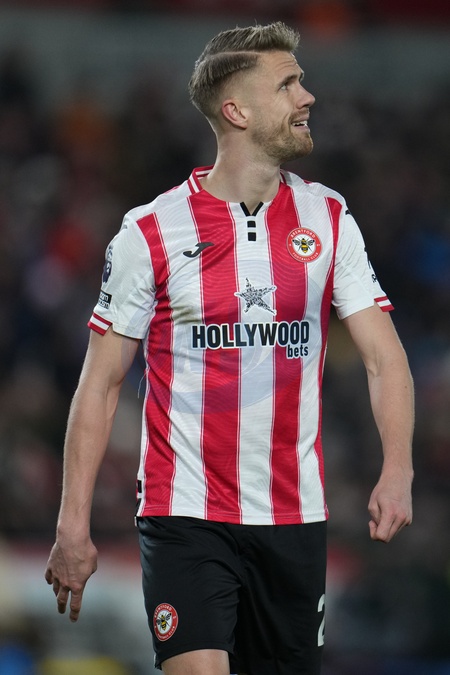 Kristoffer Ajer of Brentford during the Premier League match Brentford vs Tottenham Hotspur at The Gtech Community Stadium, London, United Kingdom, 1st January 2026, Credit:Harvey Murphy/News Images / Avalon