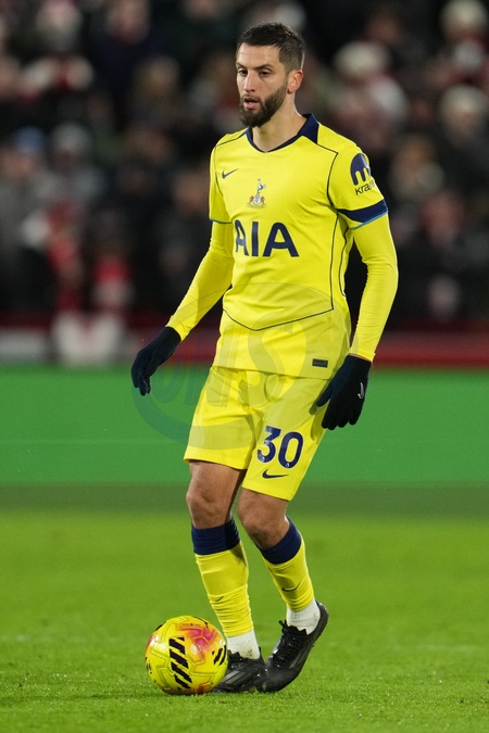 Rodrigo Bentancur of Tottenham Hotspur on the ball during the Premier League match Brentford vs Tottenham Hotspur at The Gtech Community Stadium, London, United Kingdom, 1st January 2026, Credit:Harvey Murphy/News Images / Avalon