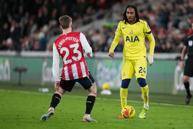 Djed Spence of Tottenham Hotspur during the Premier League match Brentford vs Tottenham Hotspur at The Gtech Community Stadium, London, United Kingdom, 1st January 2026, Credit:Harvey Murphy/News Images / Avalon