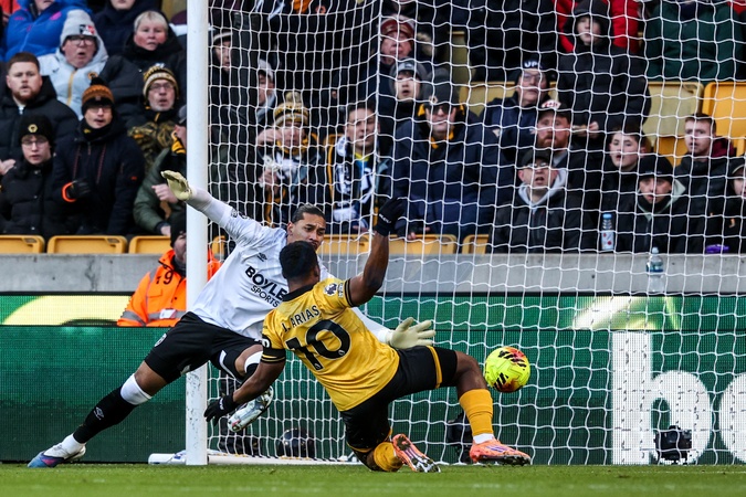 Jhon Arias of Wolverhampton Wanderers scores to make it 1-0 during the Premier League match Wolverhampton Wanderers vs West Ham United at Molineux, Wolverhampton, United Kingdom, 3rd January 2026, Credit:Ae Cosgrove/News Images / Avalon