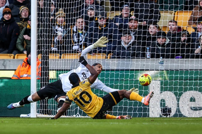 Jhon Arias of Wolverhampton Wanderers scores to make it 1-0 during the Premier League match Wolverhampton Wanderers vs West Ham United at Molineux, Wolverhampton, United Kingdom, 3rd January 2026, Credit:Ae Cosgrove/News Images / Avalon