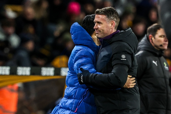 Rob Edwards manager of Wolverhampton Wanderers celebrates with his coaching staff after Wolves win their first game of the season during the Premier League match Wolverhampton Wanderers vs West Ham United at Molineux, Wolverhampton, United Kingdom, 3rd January 2026, Credit:Ae Cosgrove/News Images / Avalon