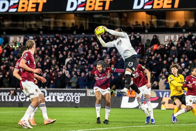 West Ham United goalkeeper Alphonse Areola jumps up to collect the ball during the Premier League match Wolverhampton Wanderers vs West Ham United at Molineux, Wolverhampton, United Kingdom, 3rd January 2026, Credit:Ae Cosgrove/News Images / Avalon