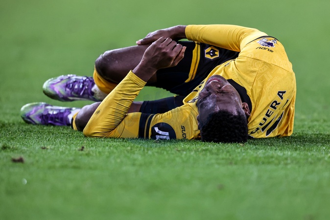 Yerson Mosquera of Wolverhampton Wanderers goes down with an injury during the Premier League match Wolverhampton Wanderers vs West Ham United at Molineux, Wolverhampton, United Kingdom, 3rd January 2026, Credit:Ae Cosgrove/News Images / Avalon