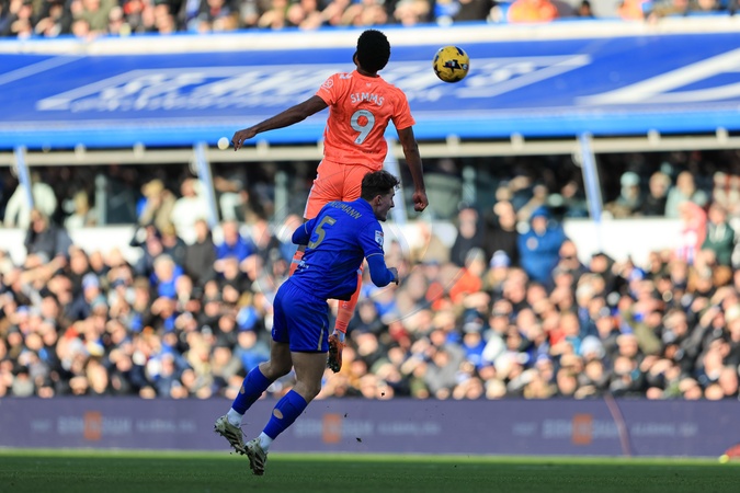 Ellis Simms of Coventry City jumps up to win the high ball during the Sky Bet Championship match Birmingham City vs Coventry City at St. Andrew's @ Knighthead Park, Birmingham, United Kingdom, 4th January 2026, Credit:Euan Manning/News Images / Avalon