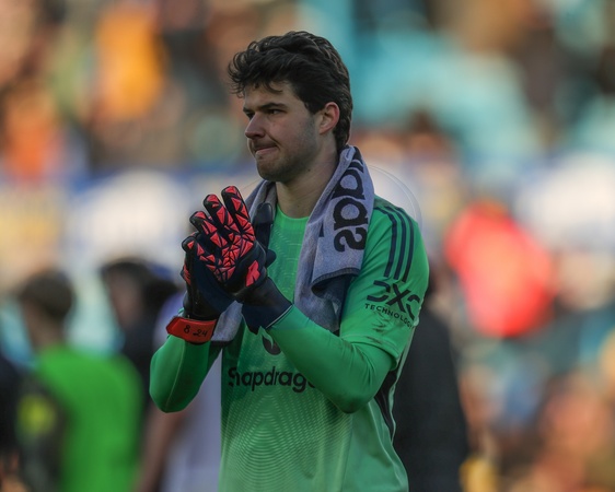 Manchester United goalkeeper Senne Lammens applauds the fans after the final whistle during the Premier League match Leeds United vs Manchester United at Elland Road, Leeds, United Kingdom, 4th January 2026, Credit:Richard Bierton/News Images / Avalon