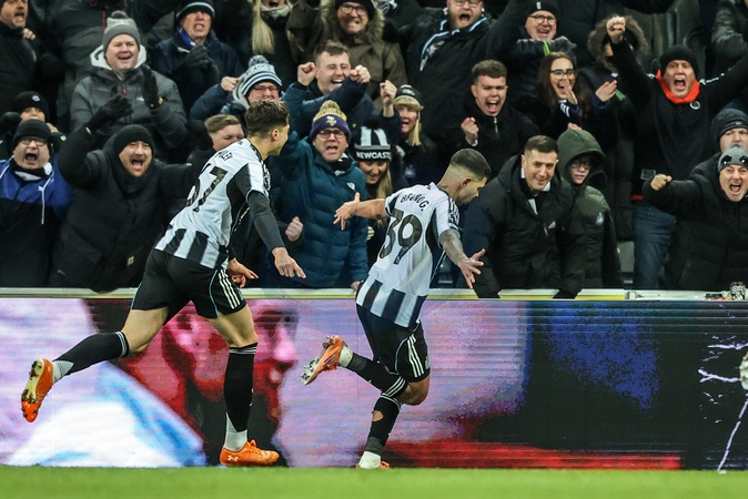 Bruno Guimaraes of Newcastle United celebrates his goal to make it 1-0 during the Premier League match Newcastle United vs Crystal Palace at St. James's Park, Newcastle, United Kingdom, 4th January 2026, Credit:Ae Cosgrove/News Images / Avalon