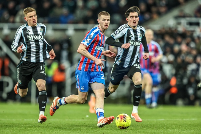 Adam Wharton of Crystal Palace passes the ball during the Premier League match Newcastle United vs Crystal Palace at St. James's Park, Newcastle, United Kingdom, 4th January 2026, Credit:Ae Cosgrove/News Images / Avalon