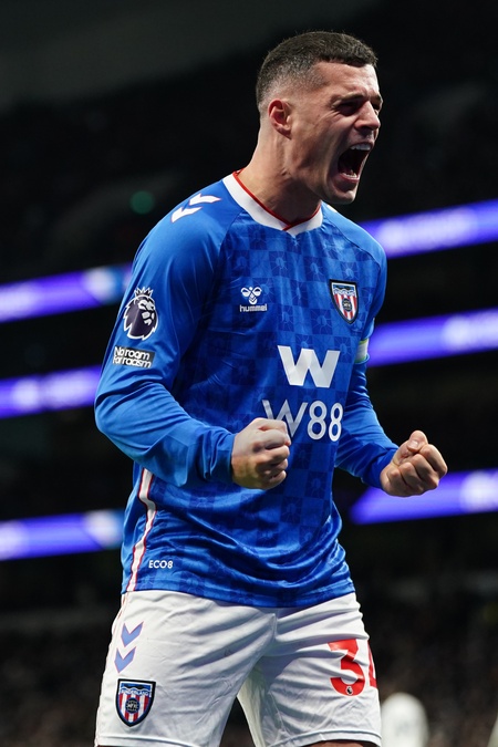 Granit Xhaka of Sunderland celebrates equaliser with away support during the Premier League match Tottenham Hotspur vs Sunderland at Tottenham Hotspur Stadium, London, United Kingdom, 4th January 2026, Credit:Harvey Murphy/News Images / Avalon