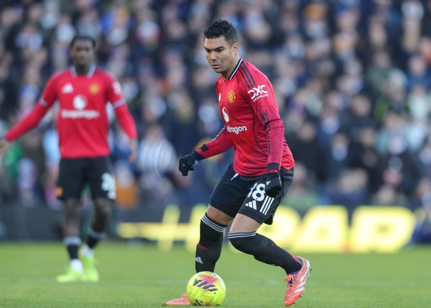 Casemiro of Manchester United on the ball during the Premier League match Leeds United vs Manchester United at Elland Road, Leeds, United Kingdom, 4th January 2026, Credit:Richard Bierton/News Images / Avalon