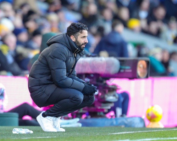 Ruben Amorim manager of Manchester United crouches down during the Premier League match Leeds United vs Manchester United at Elland Road, Leeds, United Kingdom, 4th January 2026, Credit:Richard Bierton/News Images / Avalon