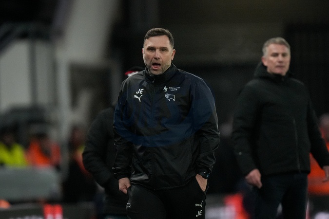 John Eustace manager of Derby County during the Sky Bet Championship match Derby County vs Wrexham at Pride Park Stadium, Derby, United Kingdom, 4th January 2026, Credit:Maynard Manyowa/News Images / Avalon