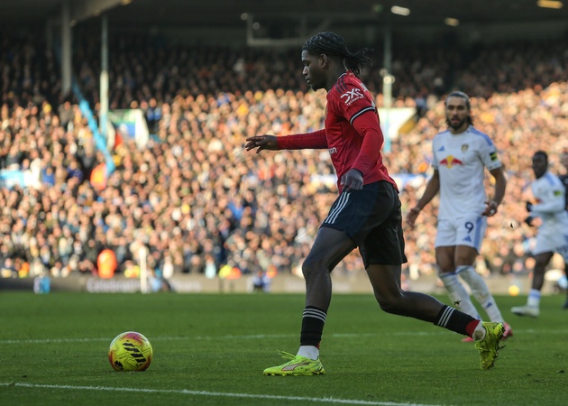 Ayden Heaven of Manchester United clears the ball up field during the Premier League match Leeds United vs Manchester United at Elland Road, Leeds, United Kingdom, 4th January 2026, Credit:Richard Bierton/News Images / Avalon