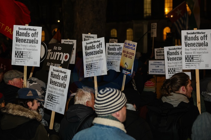 Protest against US action in Venezuela outside Downing Street in London, UK, on 06 January 2026