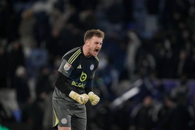 Leicester City goalkeeper Jakub Stolarczyk celebrates his team's goal to make it 2-1 during the Sky Bet Championship match Leicester City vs West Bromwich Albion at King Power Stadium, Leicester, United Kingdom, 5th January 2026, Credit:Maynard Manyowa/News Images / Avalon