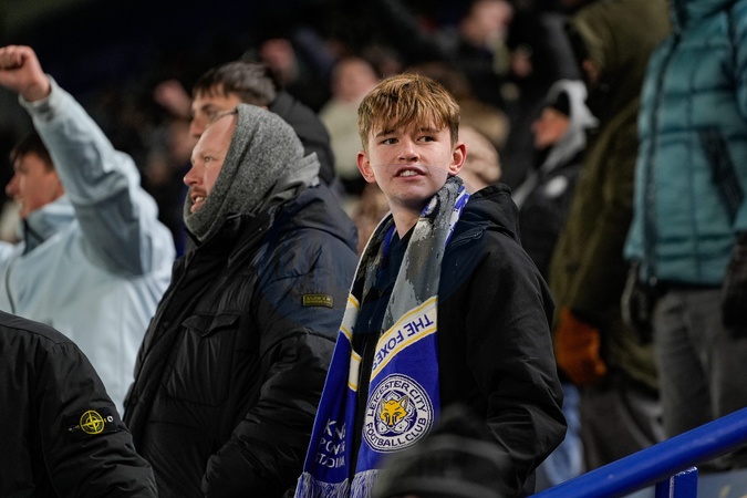 Leicester fans celebrate their team scoring to make it 2-1 during the Sky Bet Championship match Leicester City vs West Bromwich Albion at King Power Stadium, Leicester, United Kingdom, 5th January 2026, Credit:Maynard Manyowa/News Images / Avalon