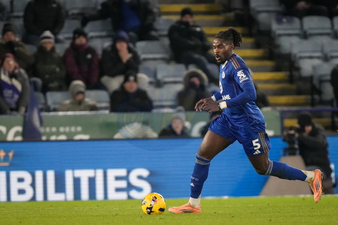 Caleb Okoli of Leicester City makes a run with the ball during the Sky Bet Championship match Leicester City vs West Bromwich Albion at King Power Stadium, Leicester, United Kingdom, 5th January 2026, Credit:Maynard Manyowa/News Images / Avalon