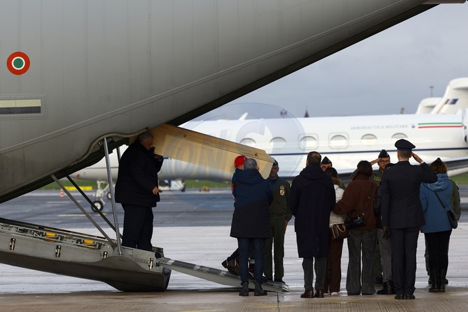 January 5, 2025, Ciampino. The C130 carrying the coffin of Riccardo Minghetti, victim of the Crans-Montana tragedy, landed at Ciampino Military Airport., Credit:Francesco Fotia / Avalon