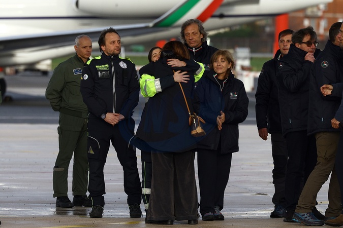 The coffin of Riccardo Minghetti, victim of the Crans-Montana disaster, arrives in Italy.