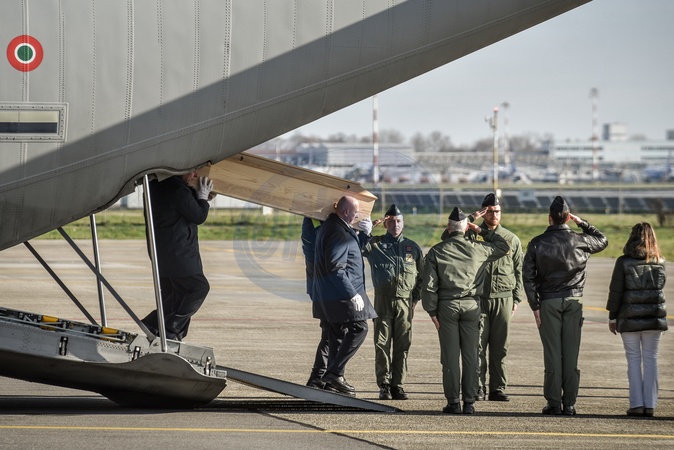 05/01/2025 Milan, Linate Military Airport, arrival of state plane with the coffins of four victims of the New Year's Eve tragedy at the Le Constellation club in Crans-Montana, Credit:Nicola Marfisi / Avalon