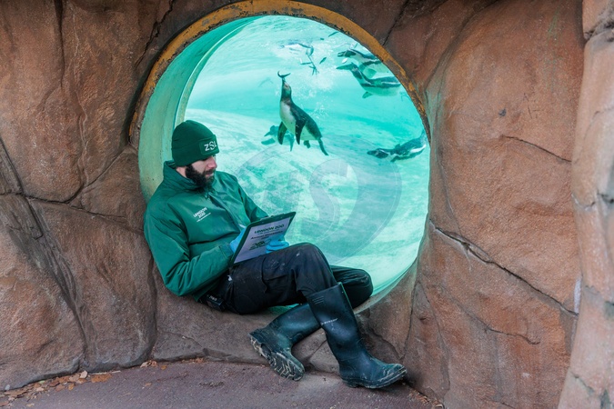 ZSL London Zoo, UK. 6th January 2026Zookeeper at ZSL London Zoo begin counting the Humboldt Penguins at the Zoo's annual stocktake.Over 8,000 animals are cared for at London Zoo, and each needs to be counted. Zookeepers will record numbers of every bird, invertebrate, fish, reptile and mammal at the Zoo.ZSL, the charity which runs London Zoo, has been contributing to the global understanding of wildlife for 200 years – having been founded to advance our scientific understanding of animals., Credit:Photo by Amanda Rose / Avalon