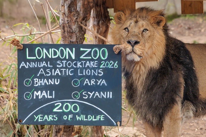 ZSL London Zoo, UK. 6th January 2026Zookeepers at ZSL London Zoo begin counting the animals at the Zoo's annual stocktake, including the 4 Asiatic Lions, Bhanu (pictured), Arya, Mali, Syanii.Over 8,000 animals are cared for at London Zoo, and each needs to be counted. Zookeepers will record numbers of every bird, invertebrate, fish, reptile and mammal at the Zoo.ZSL, the charity which runs London Zoo, has been contributing to the global understanding of wildlife for 200 years – having been founded to advance our scientific understanding of animals., Credit:Photo by Amanda Rose / Avalon