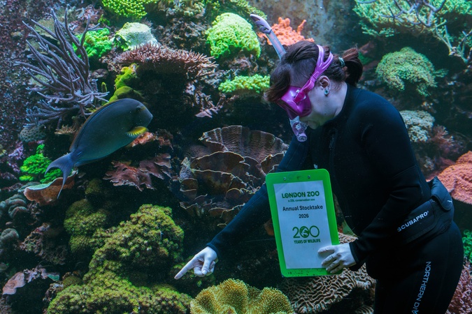 ZSL London Zoo, UK. 6th January 2026Zookeepers at ZSL London Zoo begin counting the animals at the Zoo's annual stocktake, including a variety of coral in the 'Tiny Giants' reef tank.Over 8,000 animals are cared for at London Zoo, and each needs to be counted. Zookeepers will record numbers of every bird, invertebrate, fish, reptile and mammal at the Zoo.ZSL, the charity which runs London Zoo, has been contributing to the global understanding of wildlife for 200 years – having been founded to advance our scientific understanding of animals., Credit:Photo by Amanda Rose / Avalon