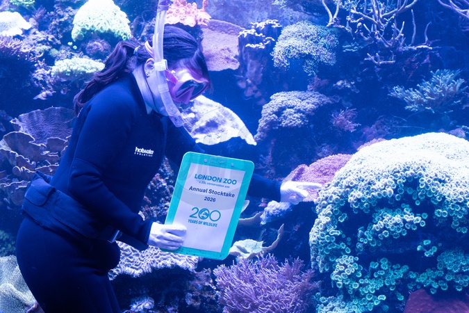 Coral being counted during London Zoo's Annual Stocktake 2026, as it kicks off ZSL's 200th anniversary with annual animal count in London, England. UK. Tuesday 6th January 2026, Credit:James Warren / Avalon