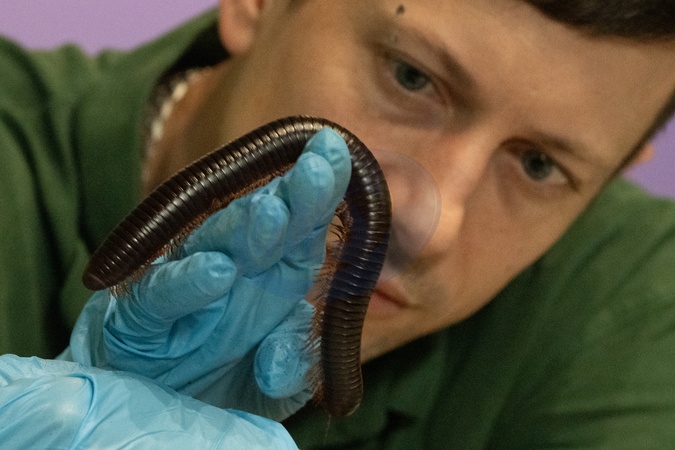 Giant African Millipede being counted during London Zoo's Annual Stocktake 2026, as it kicks off ZSL's 200th anniversary with annual animal count in London, England. UK. Tuesday 6th January 2026, Credit:James Warren / Avalon