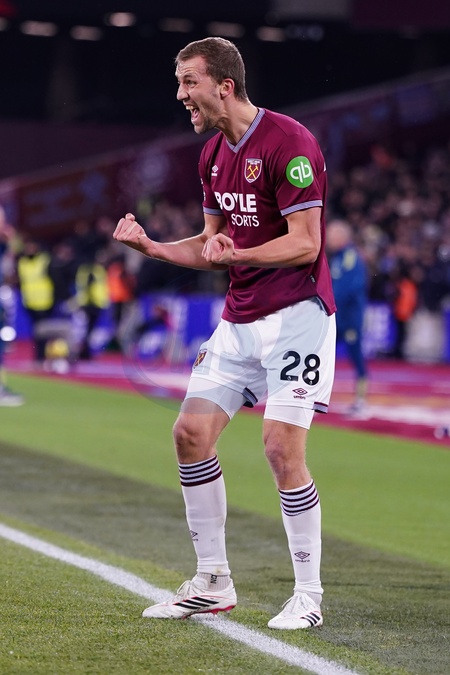Tomas Soucek of West Ham United celebrates 1-0 lead during the Premier League match West Ham United vs Nottingham Forest at London Stadium, London, United Kingdom, 6th January 2026, Credit:Harvey Murphy/News Images / Avalon