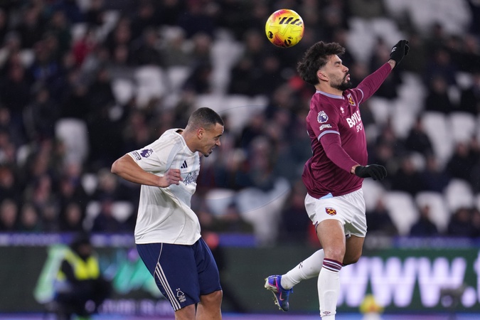 Lucas Paqueta of West Ham United wins header during the Premier League match West Ham United vs Nottingham Forest at London Stadium, London, United Kingdom, 6th January 2026, Credit:Harvey Murphy/News Images / Avalon