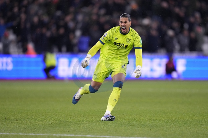Alphonse Areola of West Ham United celebrates during the Premier League match West Ham United vs Nottingham Forest at London Stadium, London, United Kingdom, 6th January 2026, Credit:Harvey Murphy/News Images / Avalon