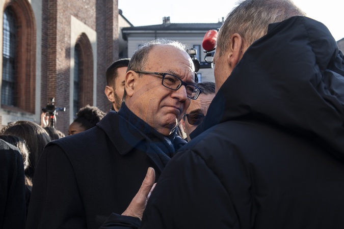 January 7, 2026, Milan. Funeral of Chiara Costanzo, the 16-year-old from Milan who died in the fire at the Le Constellation nightclub in Crans Montana, in the canton of Valais, Switzerland, on the night of January 1st. Pictured is Minister Valditara., Credit:Maria Parmigiani/AGF / Avalon
