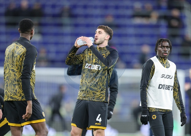 Santiago Bueno of Wolverhampton Wanderers in the pregame warmup session during the Premier League match Everton vs Wolverhampton Wanderers at Hill Dickinson Stadium, Liverpool, United Kingdom, 7th January 2026, Credit:Richard Bierton/News Images / Avalon
