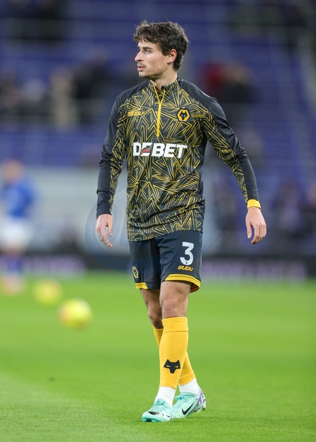 Hugo Bueno of Wolverhampton Wanderers in the pregame warmup session during the Premier League match Everton vs Wolverhampton Wanderers at Hill Dickinson Stadium, Liverpool, United Kingdom, 7th January 2026, Credit:Richard Bierton/News Images / Avalon