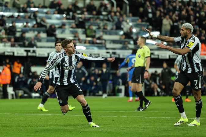 Harvey Barnes of Newcastle Untied celebrates his goal to make it 1-1 during the Premier League match Newcastle United vs Leeds United at St. James's Park, Newcastle, United Kingdom, 7th January 2026, Credit:Mark Cosgrove/News Images / Avalon