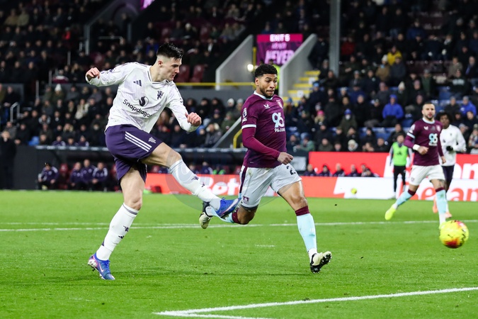 Benjamin Sesko of Manchester United shoots and scores to make it 1-1 during the Premier League match Burnley vs Manchester United at Turf Moor, Burnley, United Kingdom, 7th January 2026, Credit:Jorge Horsted/News Images / Avalon