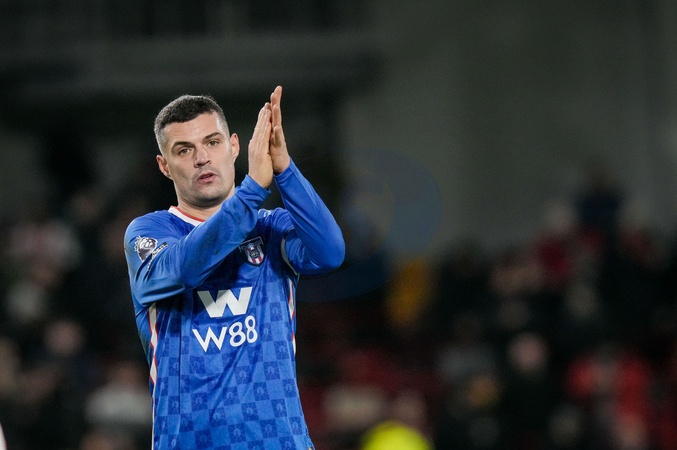 GranitXhaka of Sunderland applauds the fans after the final whistle during the Premier League match Brentford vs Sunderland at The Gtech Community Stadium, London, United Kingdom, 7th January 2026, Credit:Maynard Manyowa/News Images / Avalon